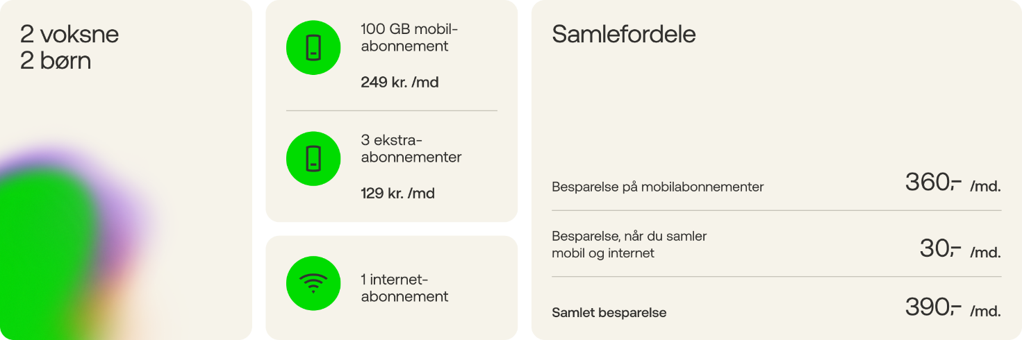 Kvaliteten er den samme, men prisen er bare lavere. Og så får alle i familien ovenikøbet dobbelt så meget mobildata med i hvert abonnement.